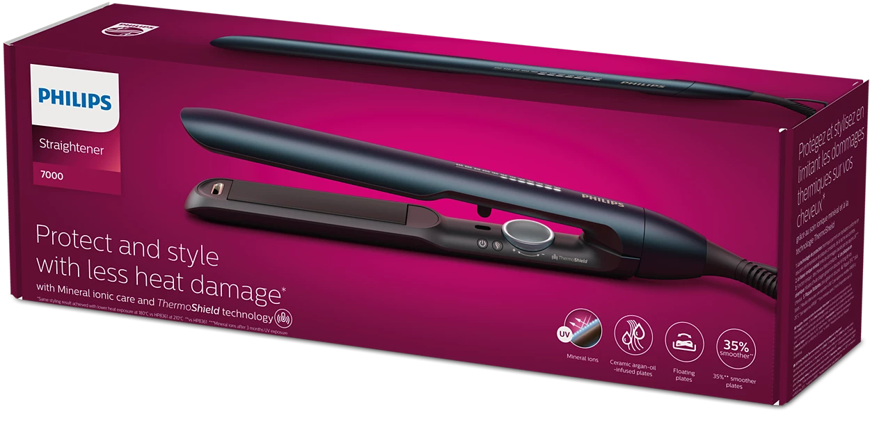 - Cabello más brillante y sin frizz : El cuidado iónico y las placas con aceite de argán mejoran la apariencia del cabello.