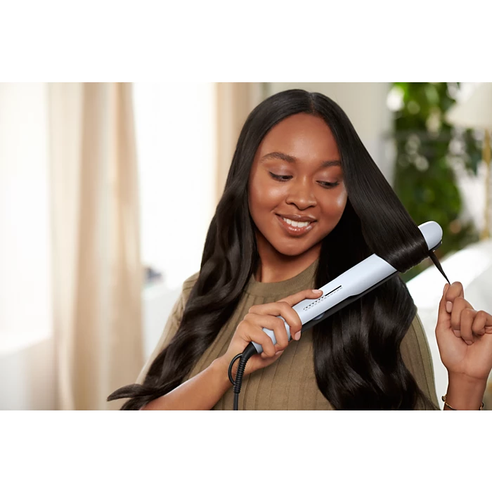 - Tecnología ThermoShield: Incorpora un sensor que regula la temperatura para mantenerla constante desde la raíz hasta las puntas, reduciendo los daños por calor y asegurando un peinado uniforme.