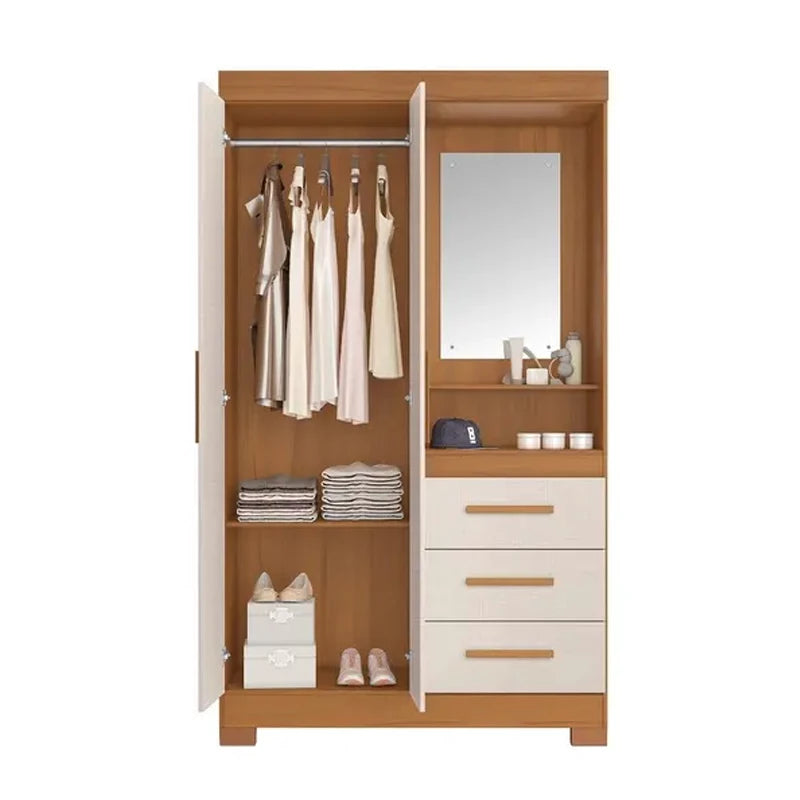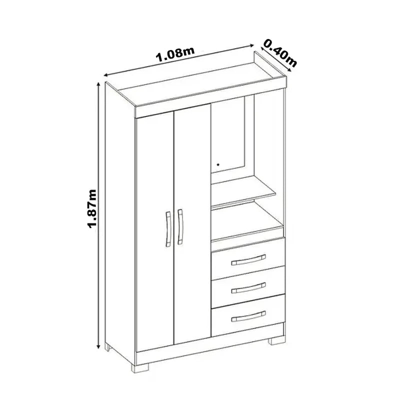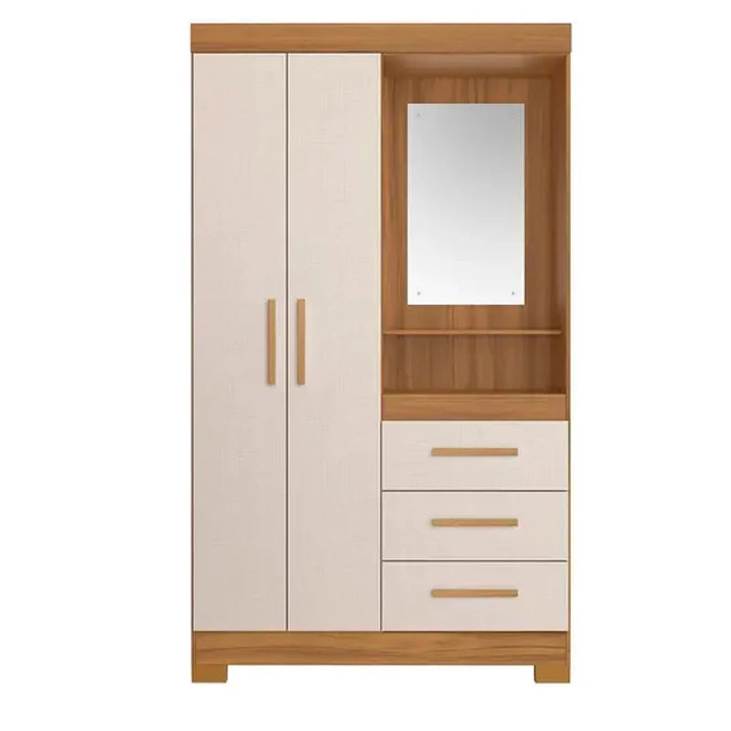 En una de las puertas externas cuenta con espejo vertical completo (de cuerpo entero), ideal para dormitorios con poco espacio y para vestirse cómodamente.