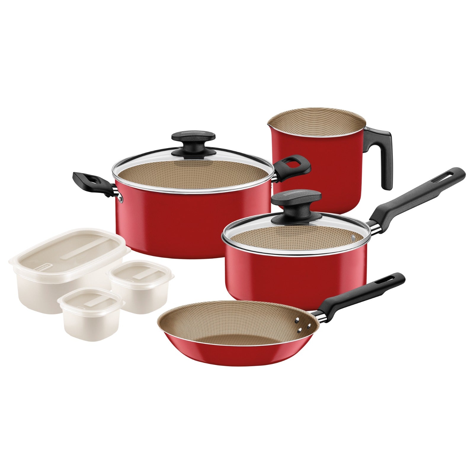 • Juego de ollas Tramontina New Turquía 7 piezas en color rojo.
