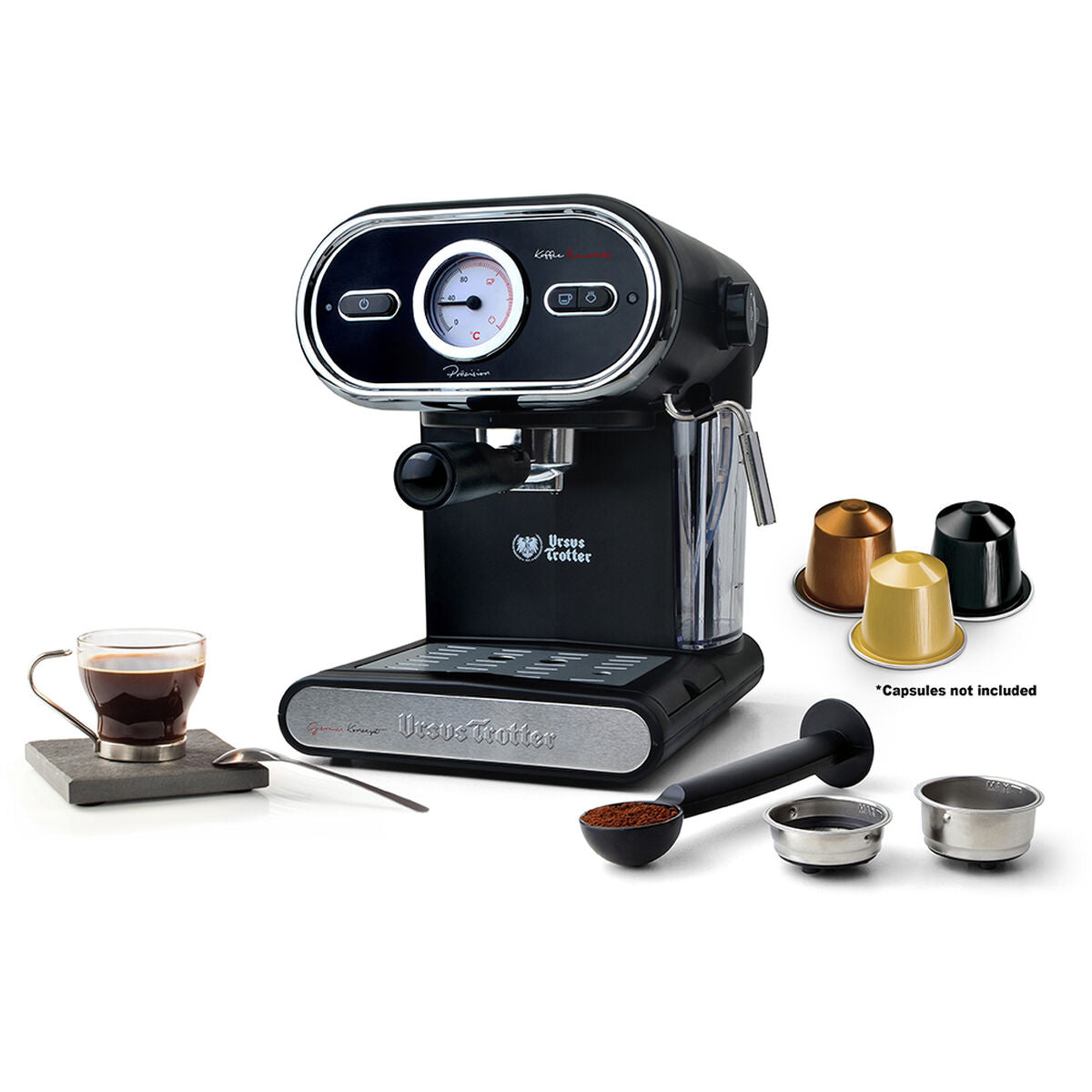 La Cafetera Ursus Trotter KAFFEE20BAR, diseñada para los verdaderos amantes del espresso. Gracias a sus 20 bares de presión, obtendrás un café intenso, con crema perfecta y sabor profesional en cada taza.
