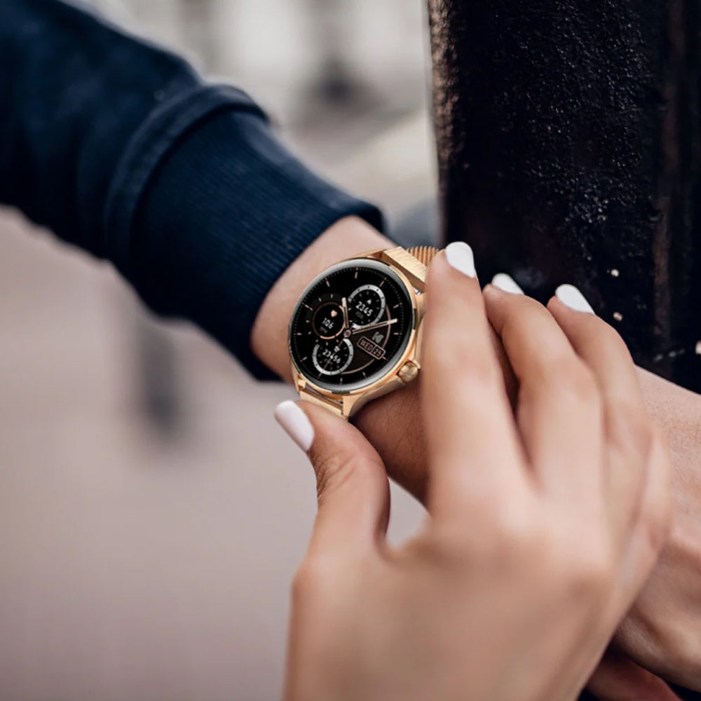 - Monitoreo de salud 24/7 (frecuencia cardíaca, oxígeno en sangre - SpO2, presión arterial, prueba de estrés)