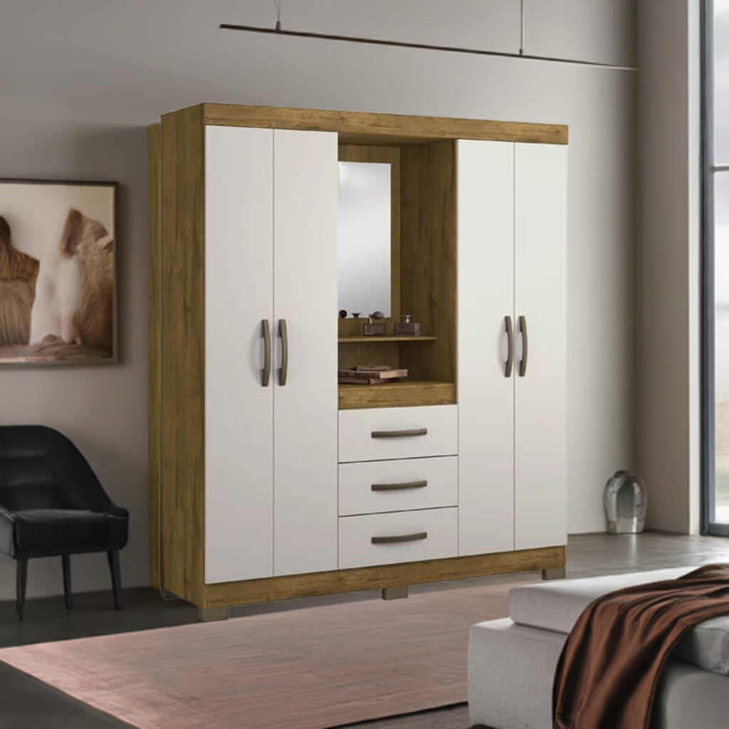 ROPERO 4 PUERTAS + 3 CAJONES CON ESPEJO CAPELINHA NT5015 NOT FREI/OW